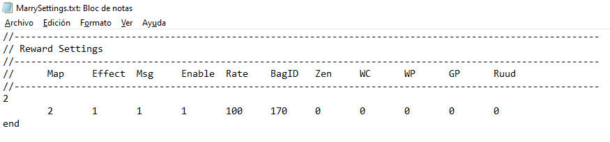 Establecerás por mapa, que efectos y si esta permitido, con que Rate de Éxito tendrán la entrega de los premios, si entregaras Zen, WC, GP, Ruud a la pareja que ganara.