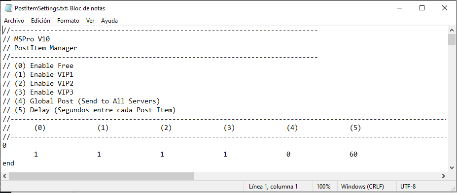 Este archivo se encuentra en Data/Commands/PostItemSettings.txt