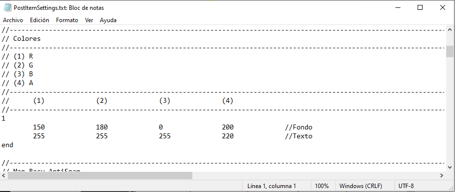 La segunda LINEA corresponde al COLOR del TEXTO del mensaje.