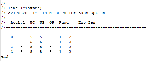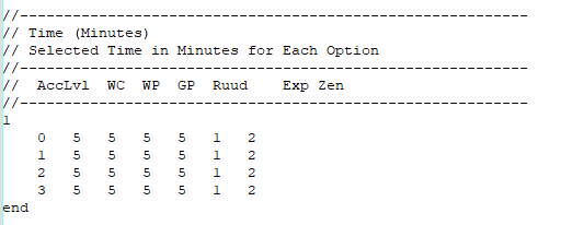 Establece el tiempo en MINUTOS que le otorgara las cantidades colocadas en la sección 0, a cada Account Level.